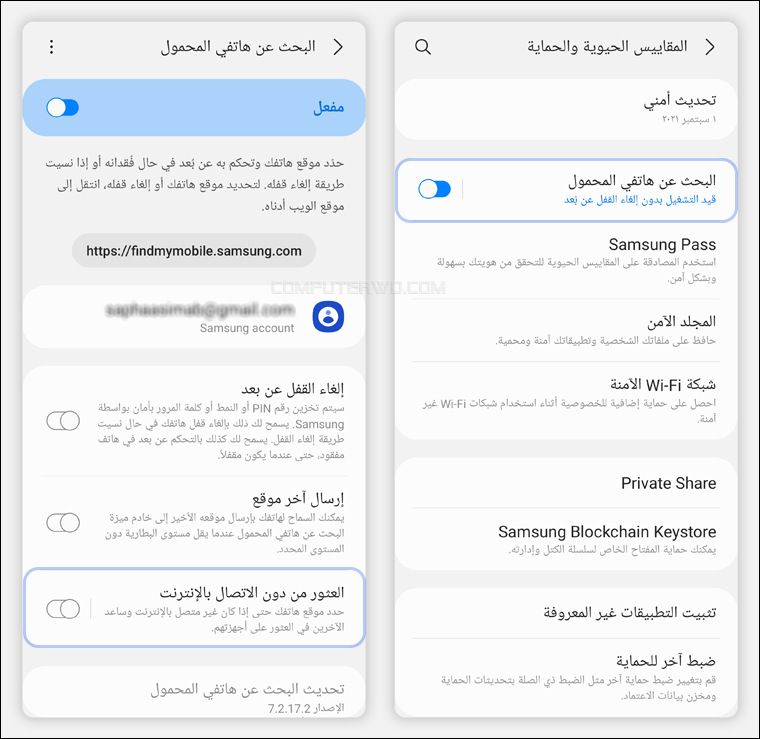تفعيل ميزة Offline finding في هواتف سامسونج