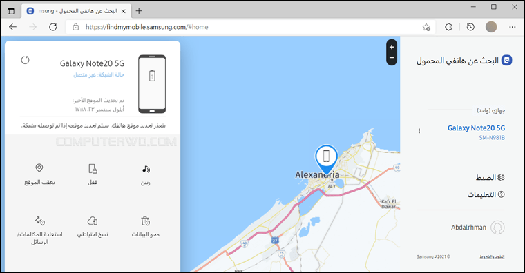 بعد تفعيل الخدمة، يمكنك معرفة مكان الهاتف في الوقت الحالي من خلال استعارة أي لابتوب أو هاتف آخر وفتح موقع [findmymobile.samsung.com] وتسجيل الدخول بحساب سامسونج المُسجل على الهاتف المفقود. ولكن لإيجاد الهاتف حتى لو بدون انترنت، قم بالضغط على خيار “العثور من دون الاتصال بالانترنت”