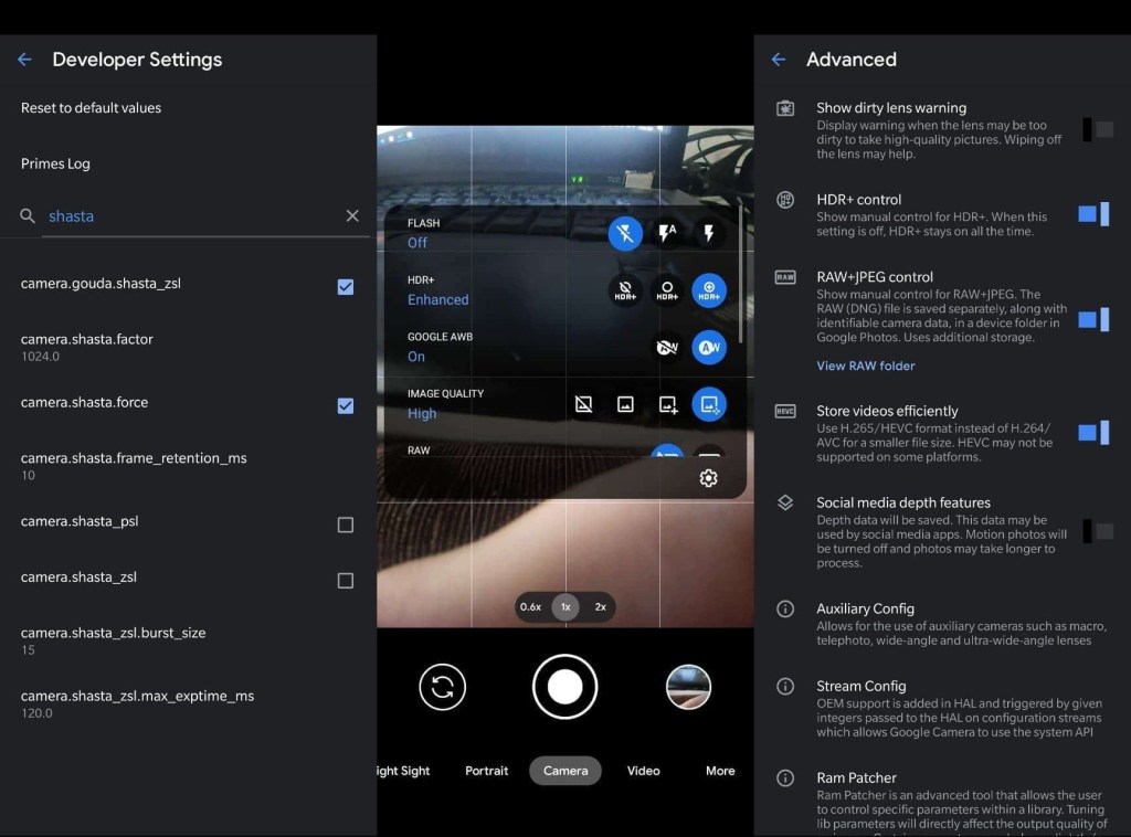 فيما يتعلق بالميزات الجديدة، فكل ميزات كاميرا قوقل على أحدث هواتف قوقل متاحة من على هذا الإصدار، لكن وجود هذه المزايا أو عدمها يعتمد على قدرات هاتفك الاندرويد، والأجهزة القادم ذكرها، تم اختبار هذه النسخة المعدلة وهي تعمل بكامل طاقتها