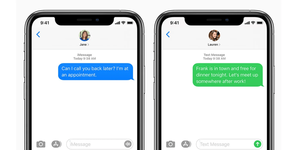 فخدمة المراسلة من أبل تتضمن عددًا من الميزات الحصرية لنظام التشغيل iOS مثل دعم إرسال الإيموجي المتحركة “Animoji” وإمكانية إرسال الصور ومقاطع الفيديو بالإضافة إلى النصوص عبر شبكة الهاتف الخلوية أو شبكة الواي فاي، وتشتهر المراسلات في هواتف آيفون بتمييز مستخدمي الأندرويد من خلال وصول رسائلهم باللون الأخضر بدلًا من اللون الأزرق الأصلي لنظام iOS كما وضحنا سابقًا.